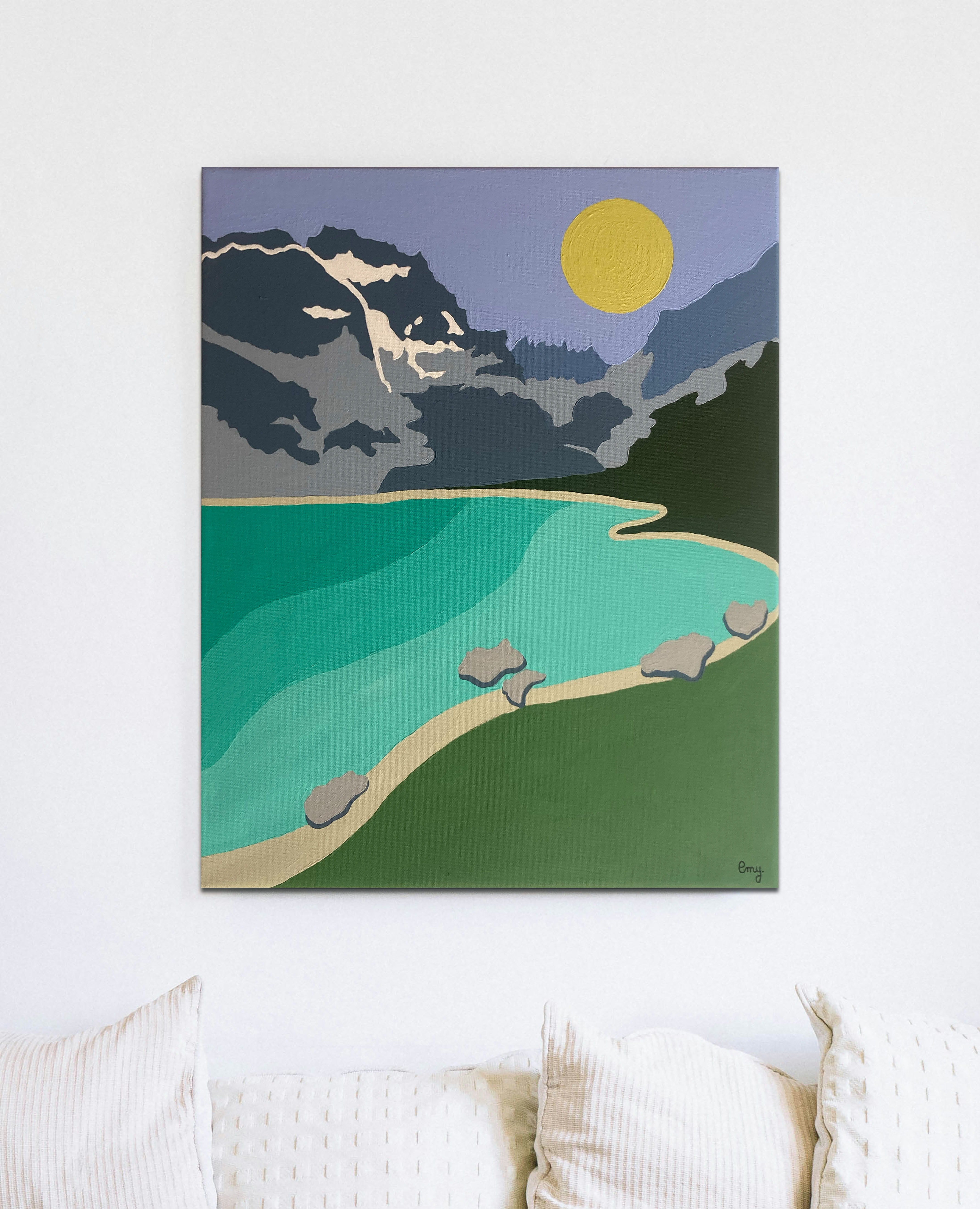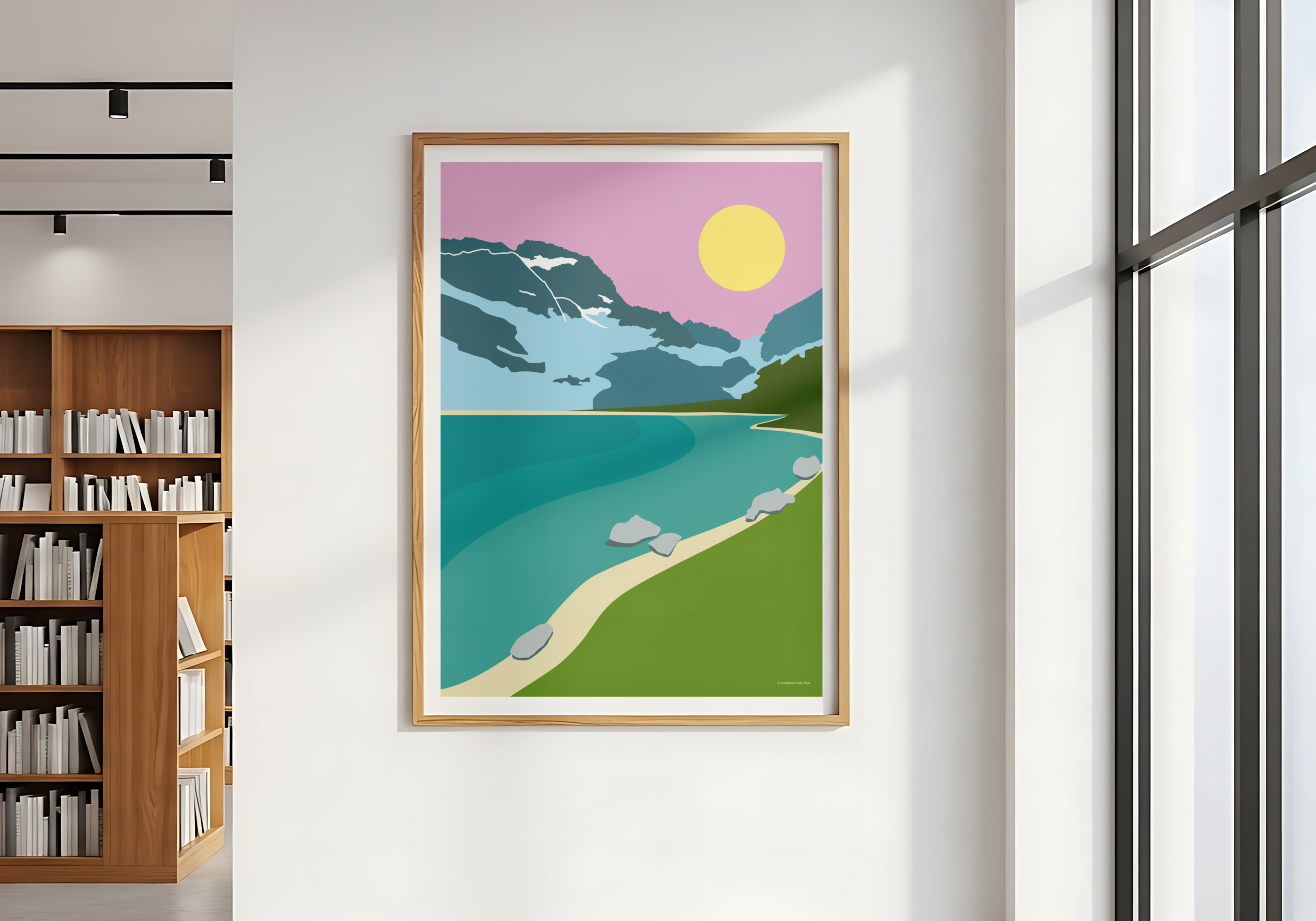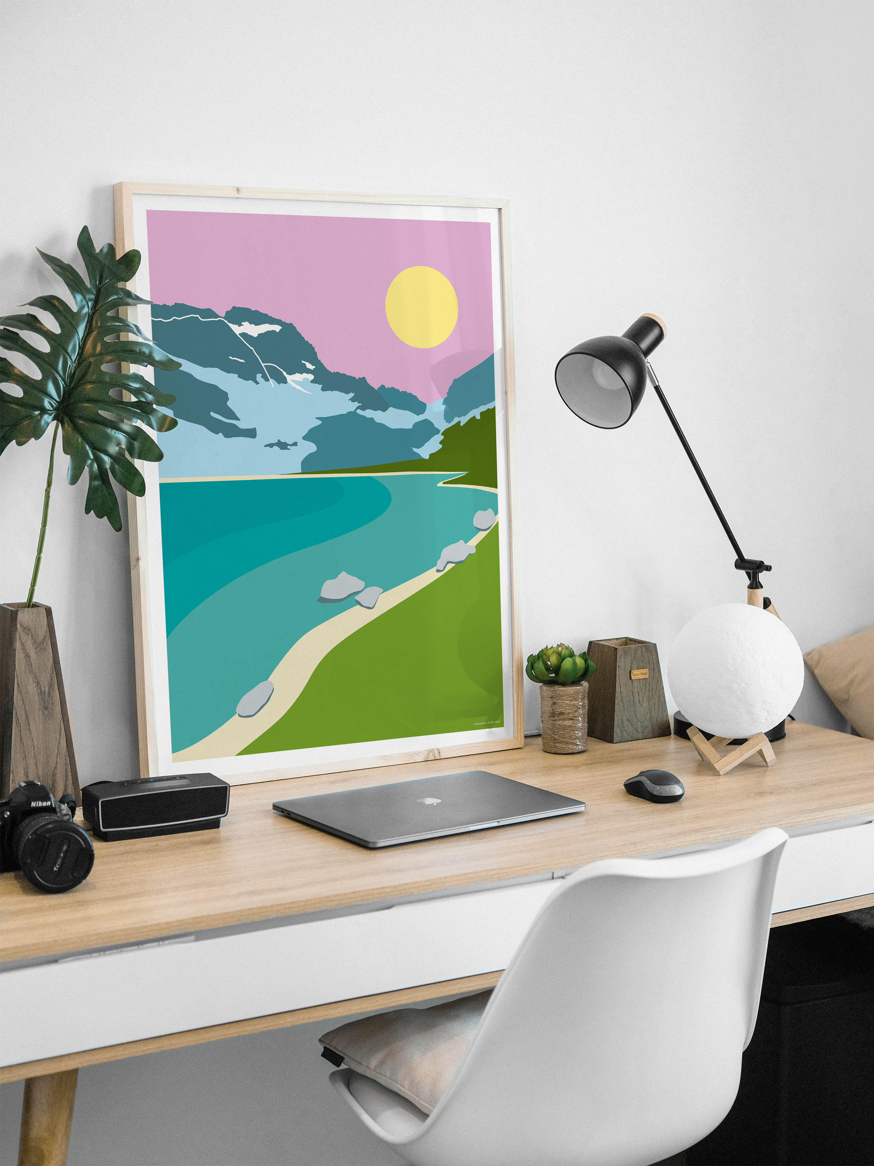 Évadez-vous au cœur du Parc national des Écrins avec cette affiche moderne du Lac de la Muzelle. Cette illustration vectorielle au style graphique minimaliste et coloré, dépeint le célèbre lac turquoise et son majestueux glacier sous un ciel rose poudré. Elle apporte une touche de fraîcheur et d’élégance à toute décoration intérieure. Parfait pour les amateurs de montagne et de design épuré.