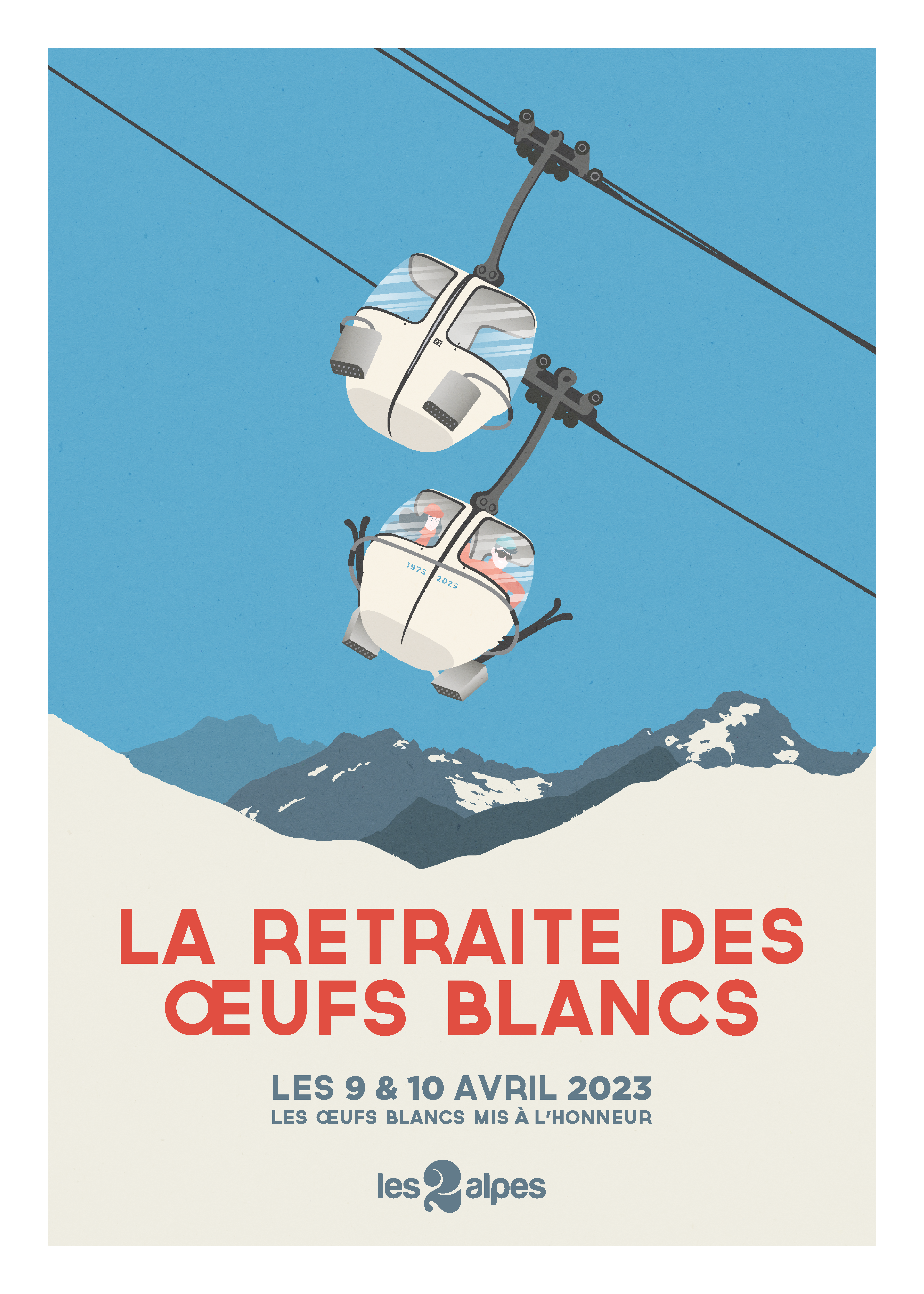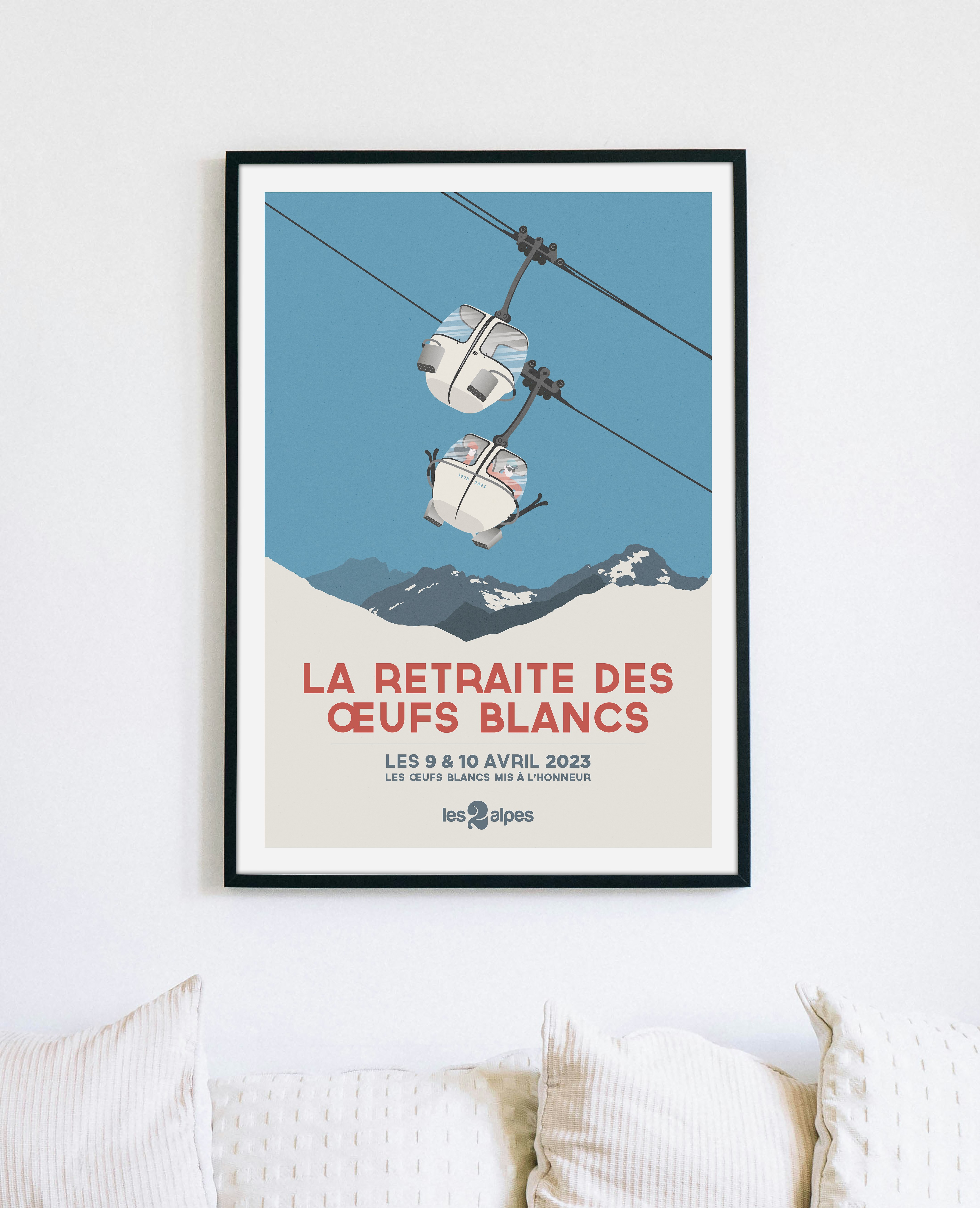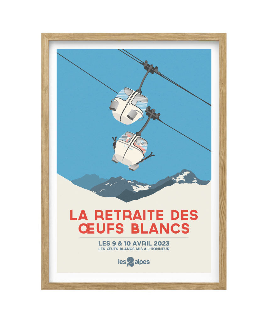 Réalisée à l’occasion de la retraite des emblématiques cabines des oeufs blancs, cette affiche néo-rétro met à l’honneur ces cabines iconiques. Après un demi-siècle à transporter les skieurs vers les sommets (1973 – 2023), ont été vendues aux enchères après leurs dernières rotations. L’affiche raconte 50 ans d’histoire de montagne. Placée dans un cadre épuré, elle devient une pièce de conversation parfaite pour votre intérieur.