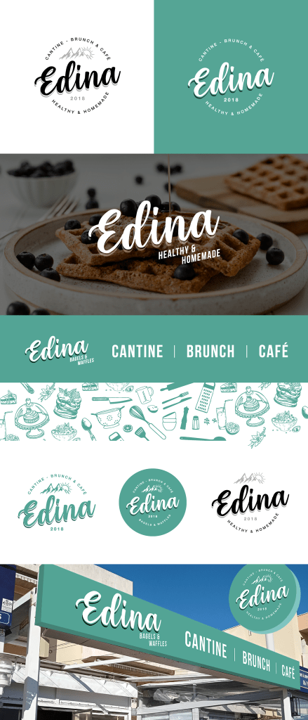 Création de l’identité graphique du restaurant Edina, pour la réalisation du logotype et de l’enseigne.