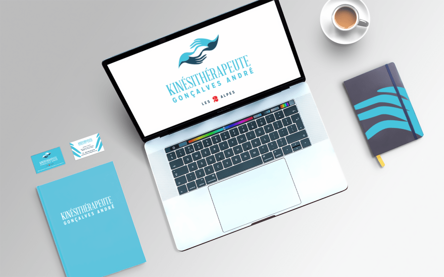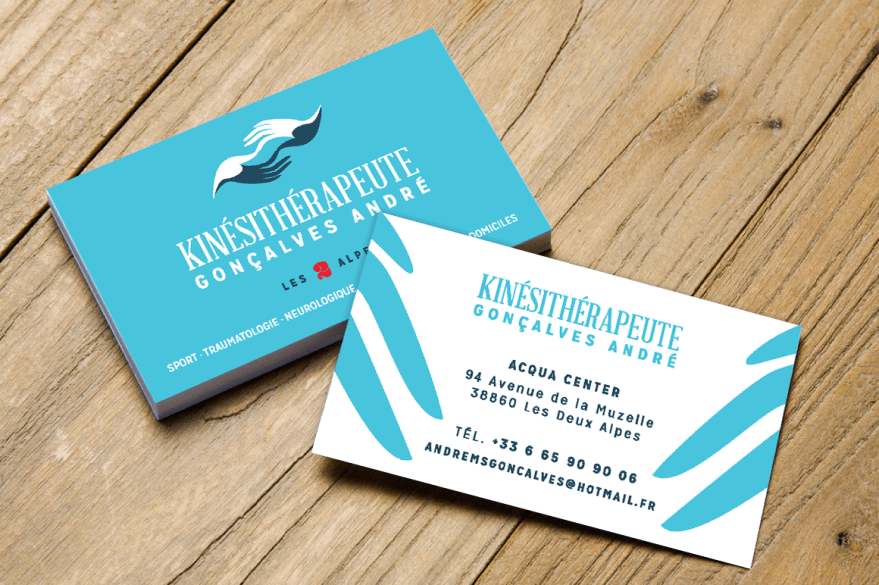 Logo & papeterie – Kinésithérapeute Création d’une identité visuelle et de carte de visite.André GONÇALVES masseur et kinésithérapeute praticien aux 2 Alpes (38). Tagué logo, print