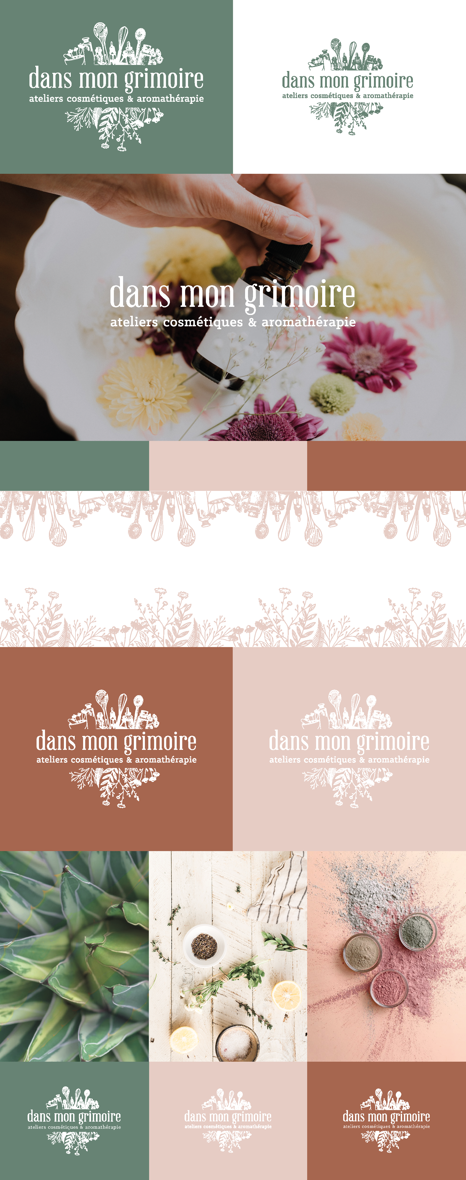 Création de l’identité visuelle des ateliers de cosmétiques et aromathérapie Dans mon Grimoire installé à Malaucène (84).